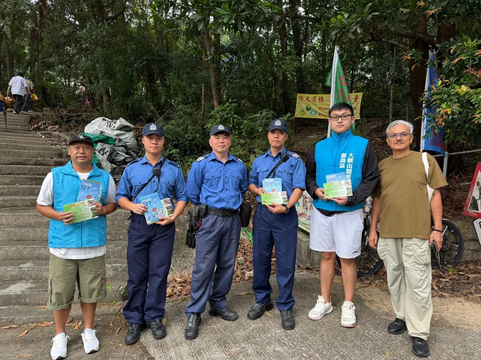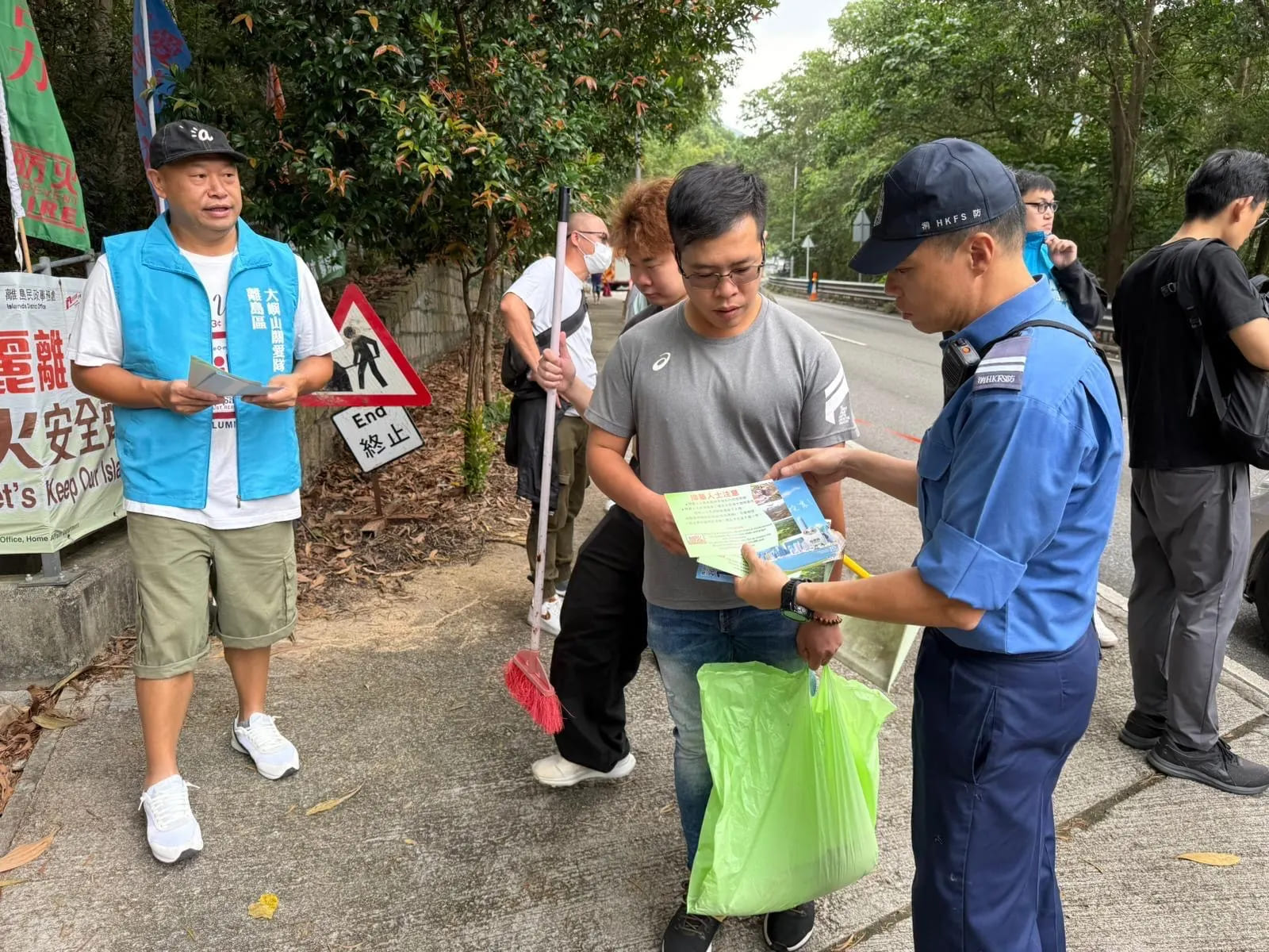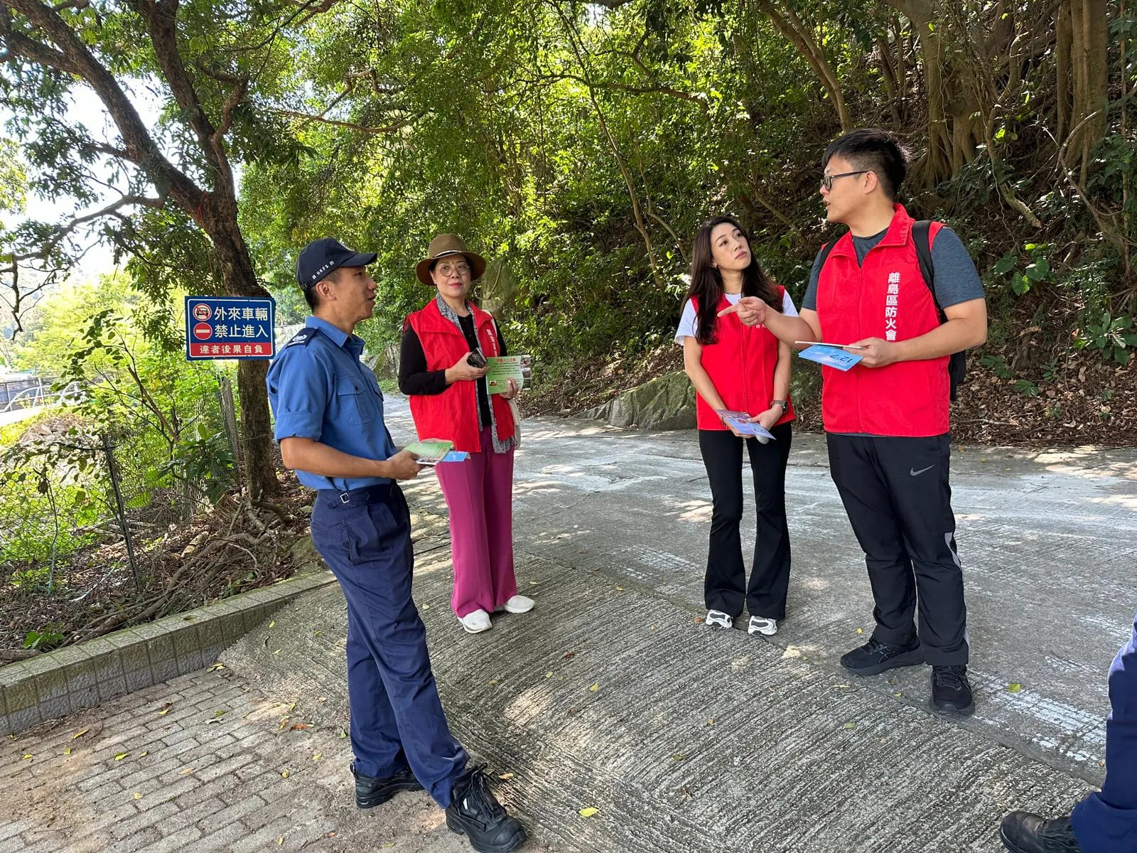 In order to remind the citizens on the message of fire safety during the Ching Ming Festival, members from Tung Chung Fire Station, together with Islands District Fire Safety Committee and Lantau Island Care Team, conducted fire safety publicity at area around Pak Mong and Shek Mun Kap. During the event, leaflets were distributed to local residents and tomb-sweeping citizens. Leaflets promoting the Legislative Council General Election were also distributed.