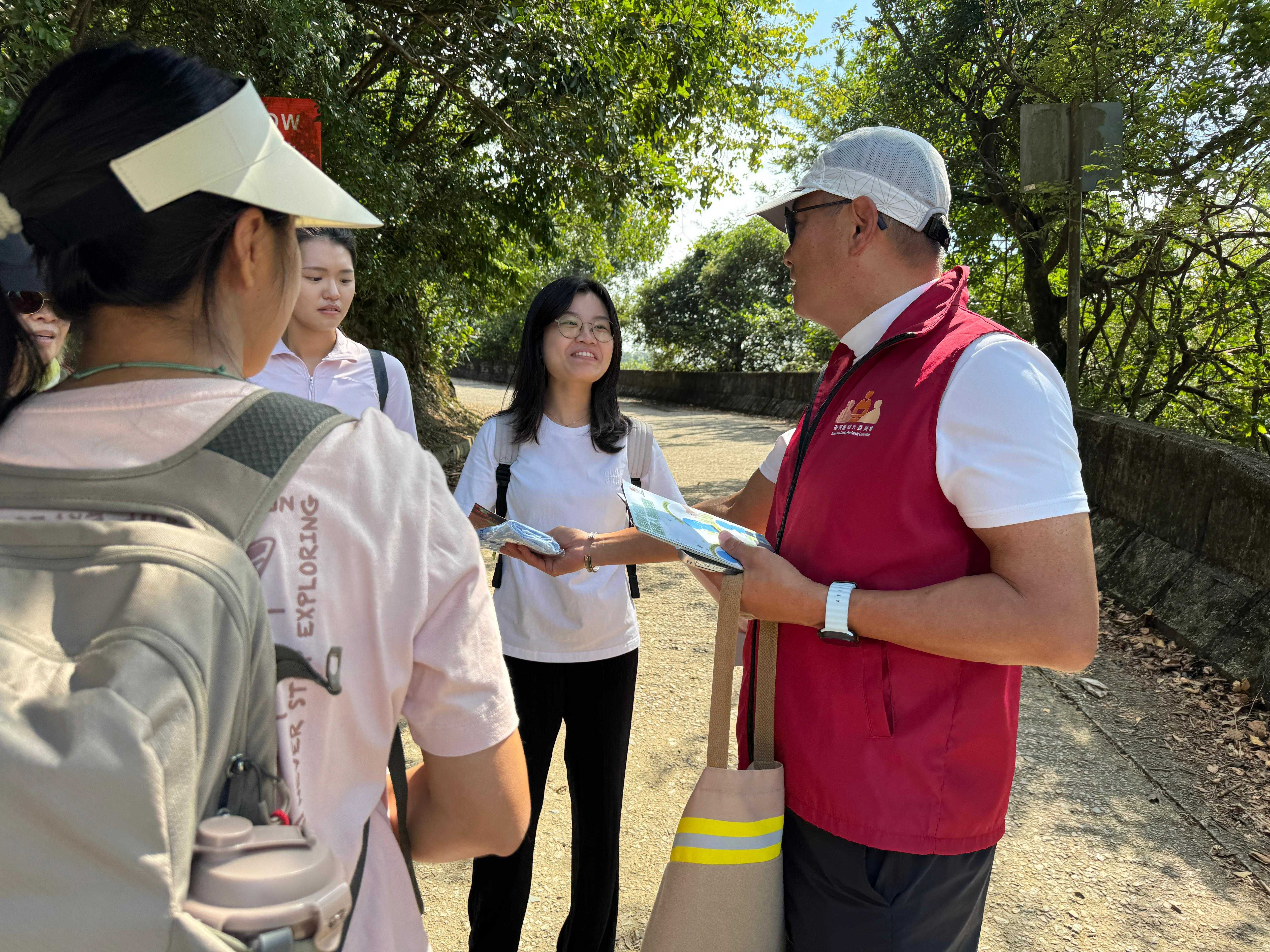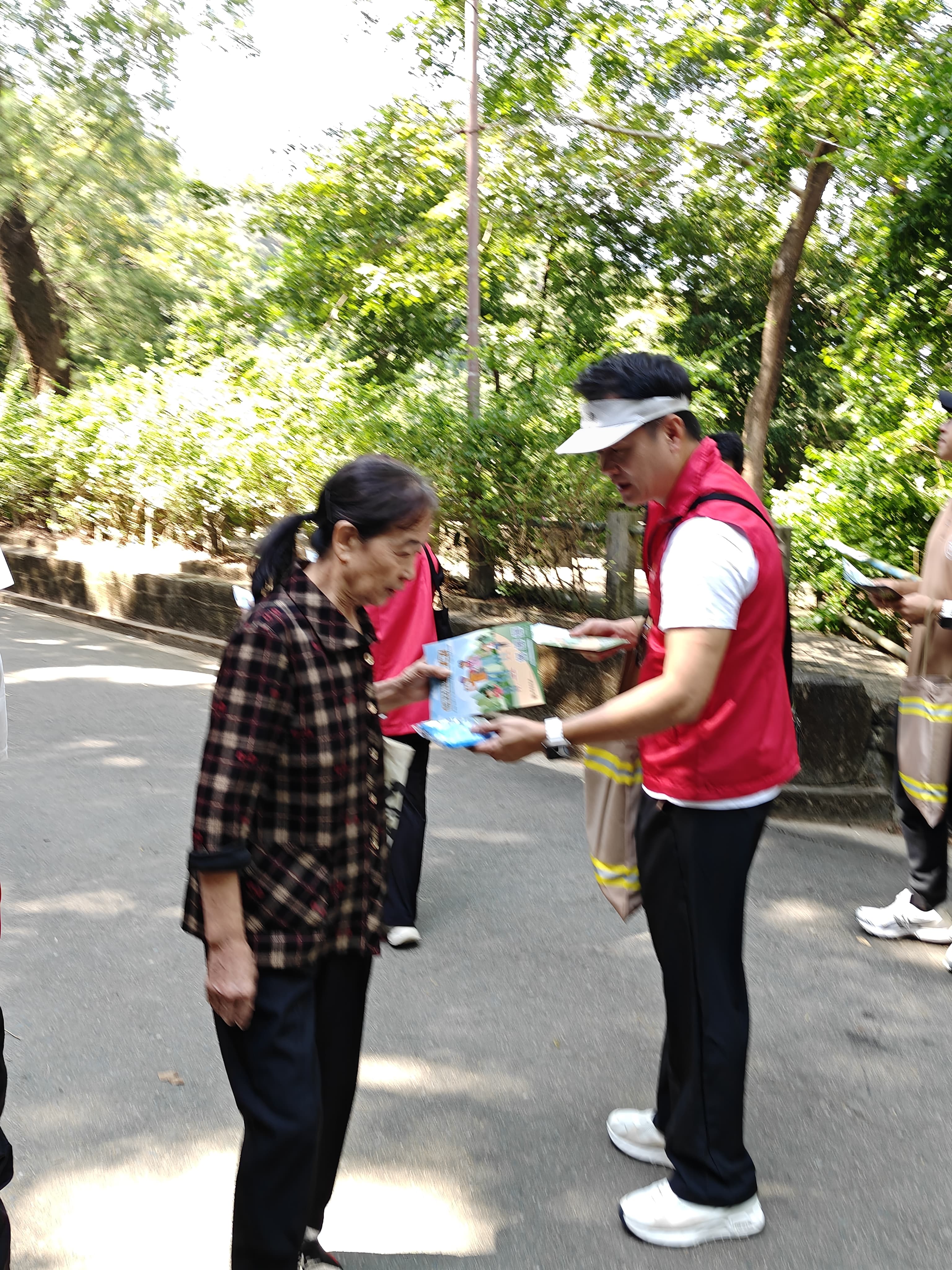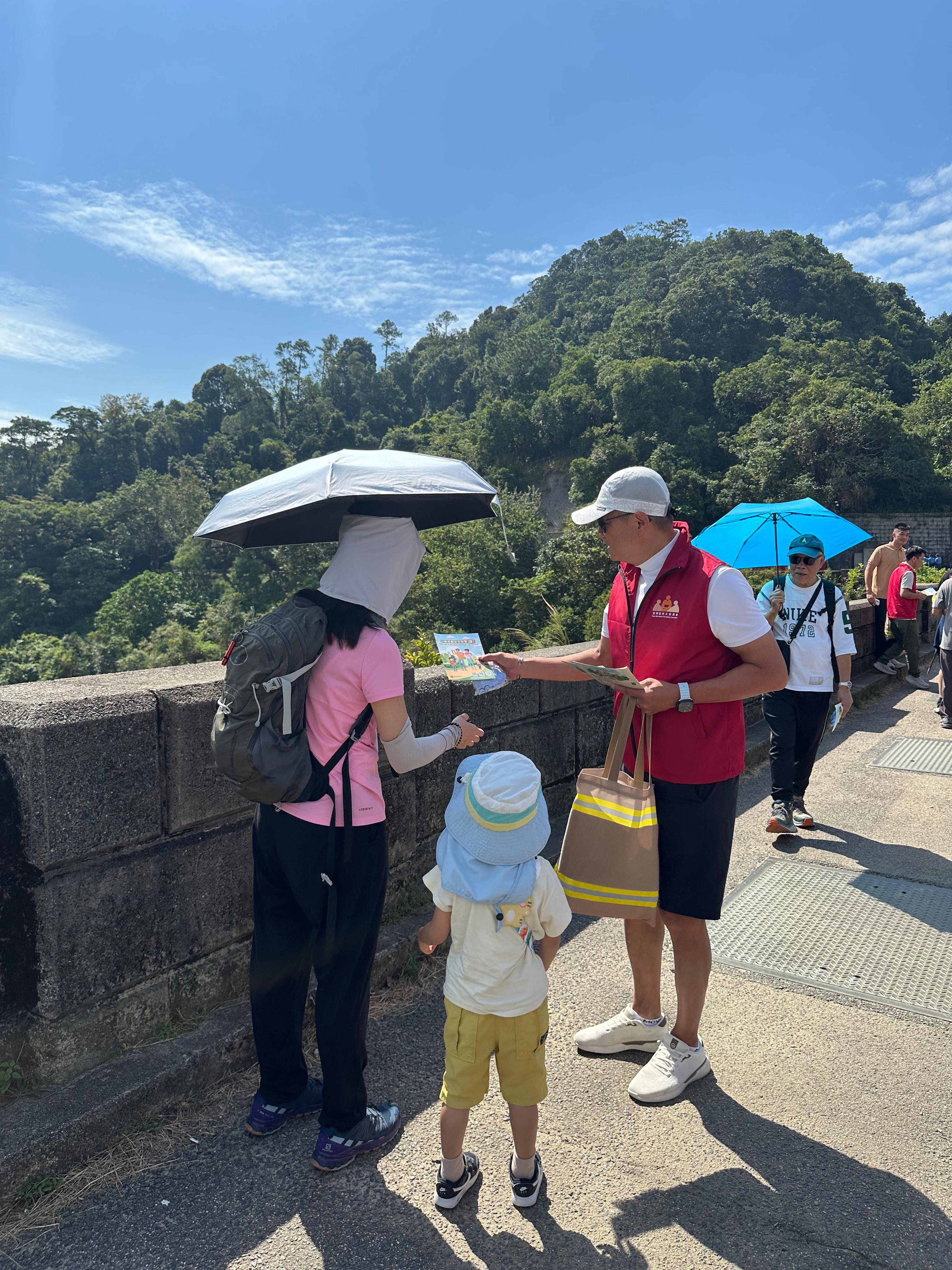 This Ching Ming Festival, Fire Services Department and the Chairman, Vice-Chairman and members of the District Fire Safety Committee (Tsuen Wan District) promoted fire and mountain safety messages to hikers and picnickers at Shing Mun Country Park.