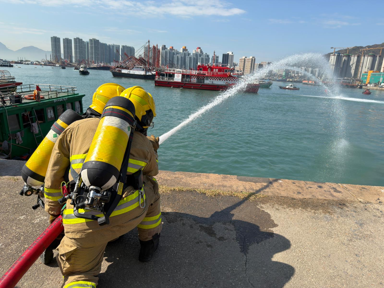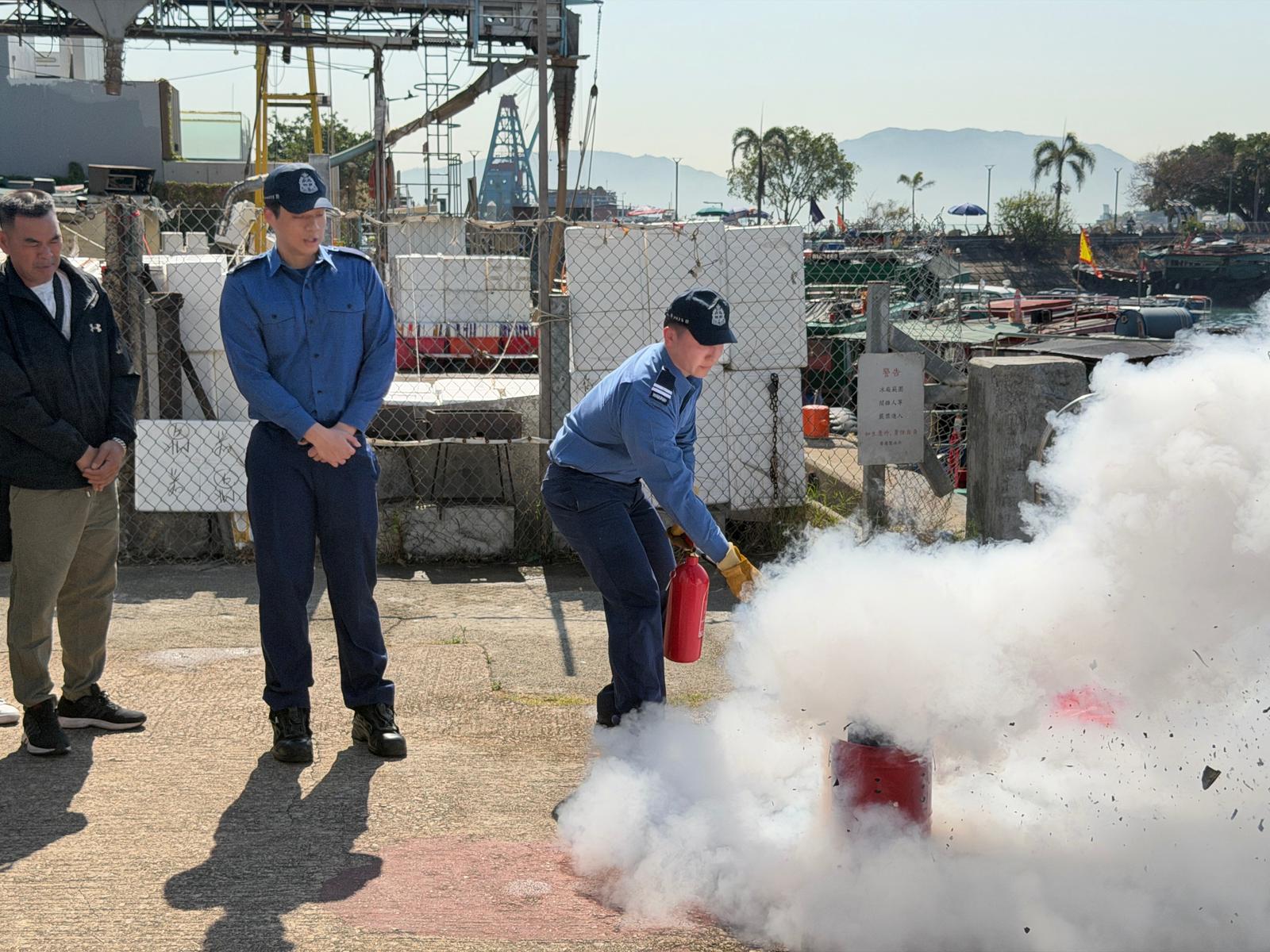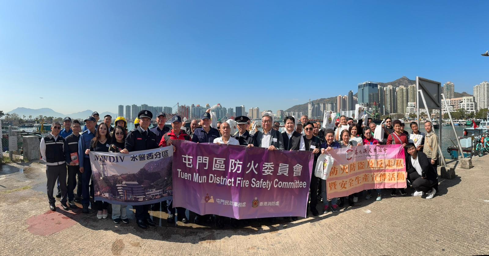 On 6.2. 2026, the Fire Services Department, together with the Police Force and the Marine Department, conducted a joint exercise at Tuen Mun Typhoon Shelter. The scenario simulated a fire breaking out on a vessel moored in the shelter, with the aim of strengthening coordination among the agencies and enhancing their response capabilities to typhoon‑shelter fire incidents. After the drill, the Fire Services Department once again formed an outreach team with the Tuen Mun Home Affairs Office, the Tuen Mun District Fire Prevention Committee, and representatives of the Hong Kong & Kowloon Fishery Association. The team entered the community to carry out fire‑prevention education, distributing fire‑safety pamphlets to boat owners and demonstrating the proper use of fire extinguishers. This effort was intended to raise fire‑prevention and emergency‑response awareness among local workers and nearby boat owners. Overall, the activity's core purpose was to disseminate disaster‑response knowledge and boost fire‑safety awareness among residents of the district.