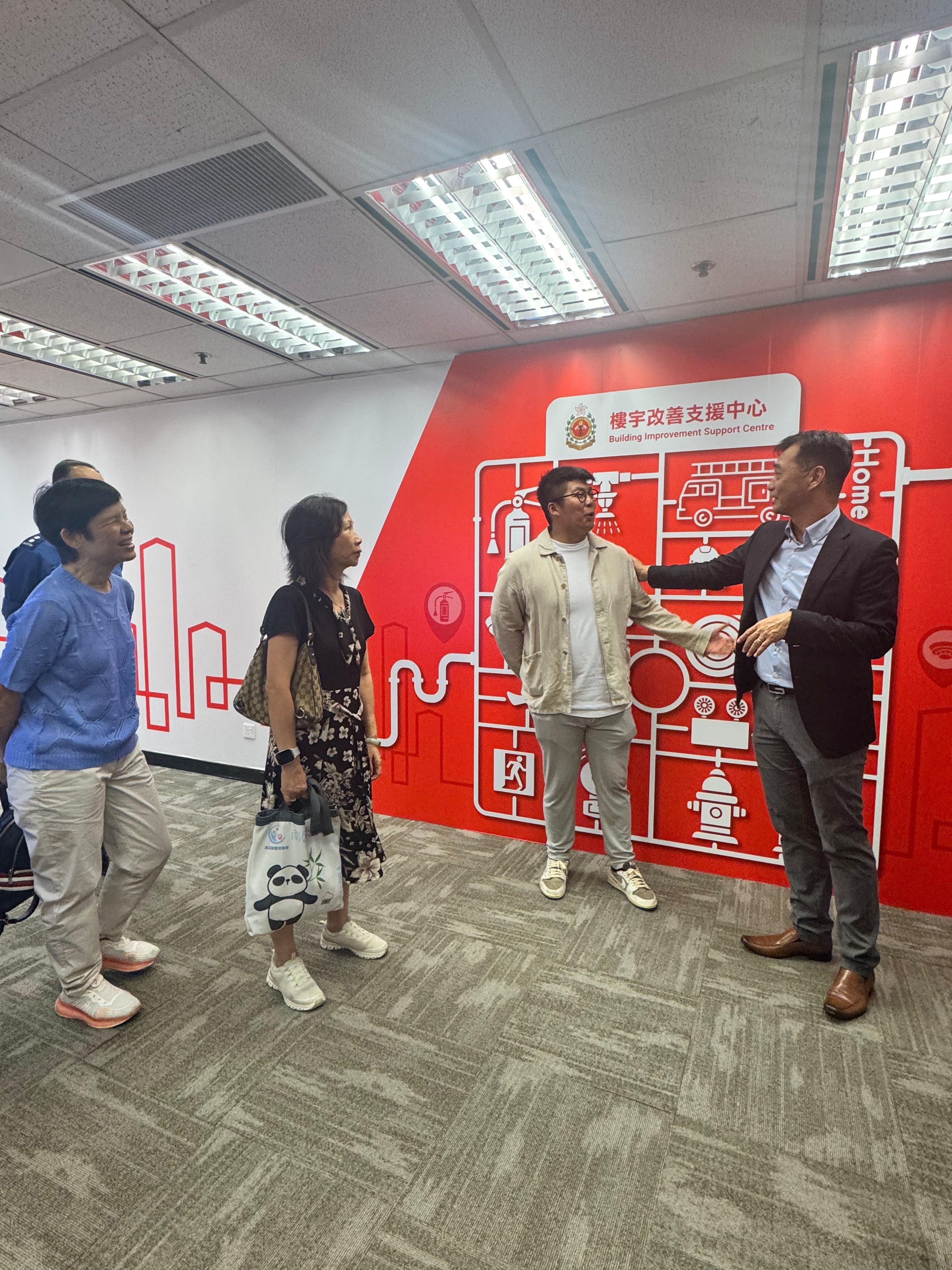 南區防火委員主席及委員於當日參觀消防處樓宇改善支援中心(灣仔),讓參與者了解消防處對樓宇消防安全改善工程及改善的資源與支持,務求便利市民改善目標樓宇整體消防安全水平。