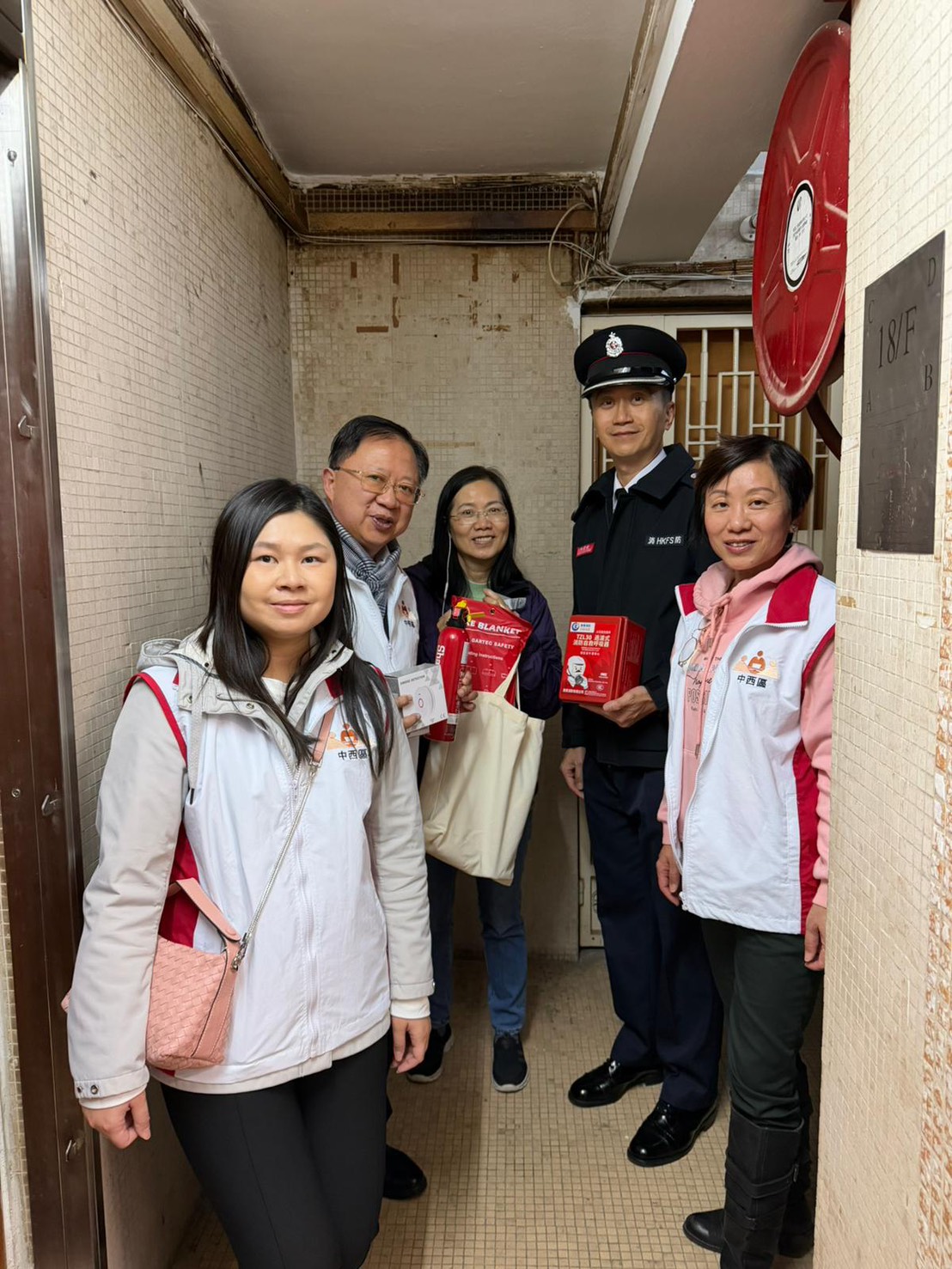 活動中不但向住戶派發「防災應急包」,當中包括滅火筒、滅火氈、獨立火警偵測器和防煙頭套。 期間亦教育居民及管理員使用消防喉轆的步驟和口訣「破,轉,拉,射」。 我們亦探訪居民,評估其家居防火安全狀况,向他們推廣應對火災方法和減低家居的火警隱患。