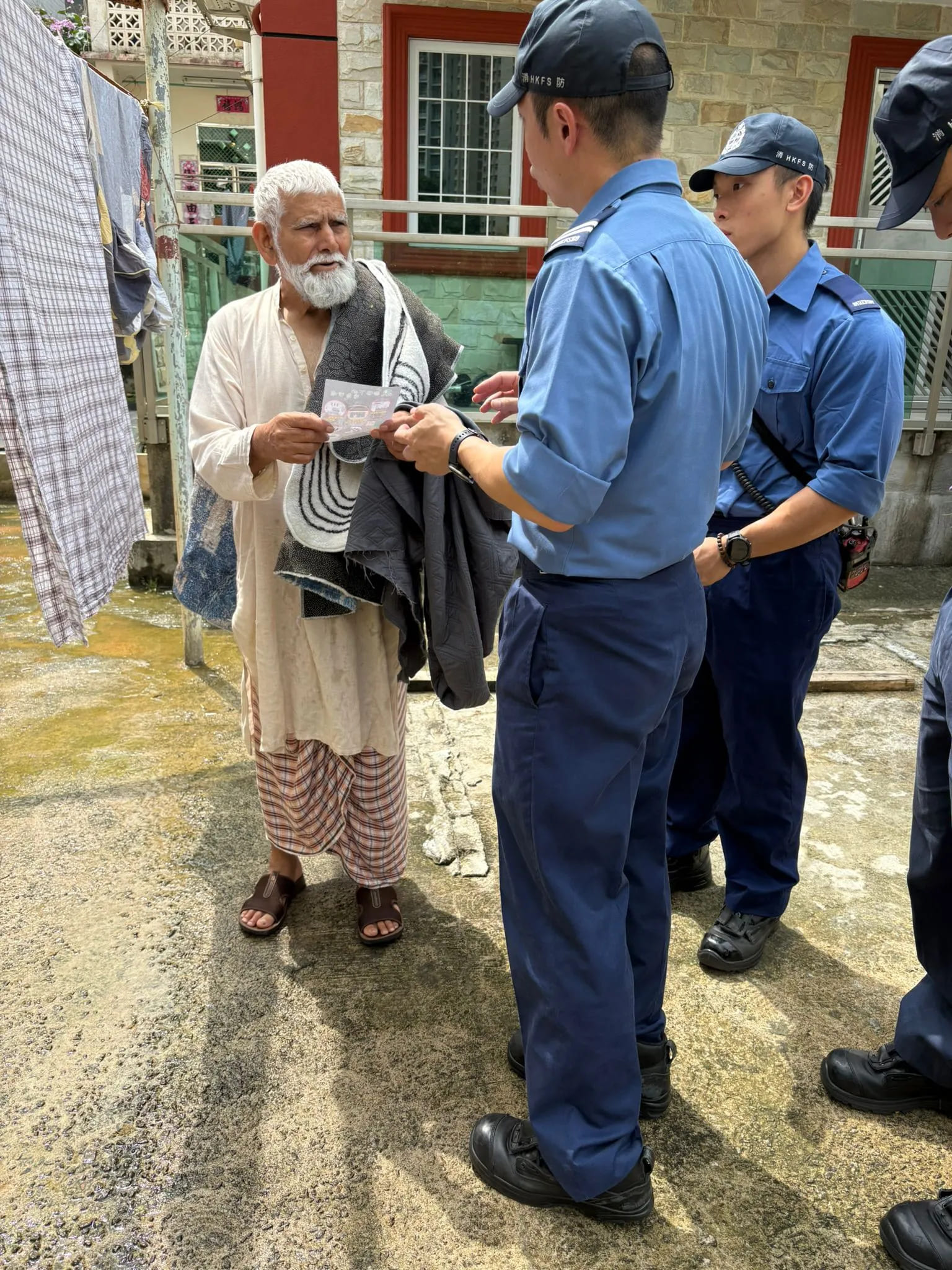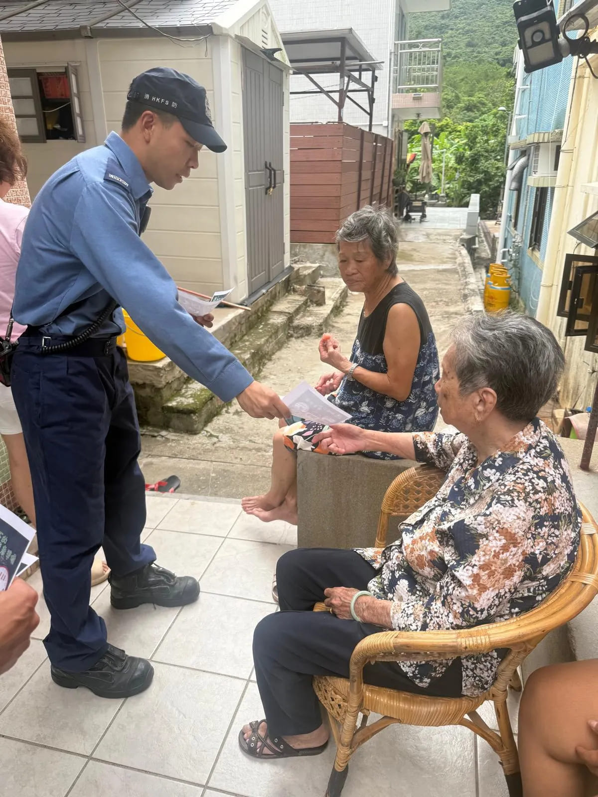 消防人員向區內長者派發傳單