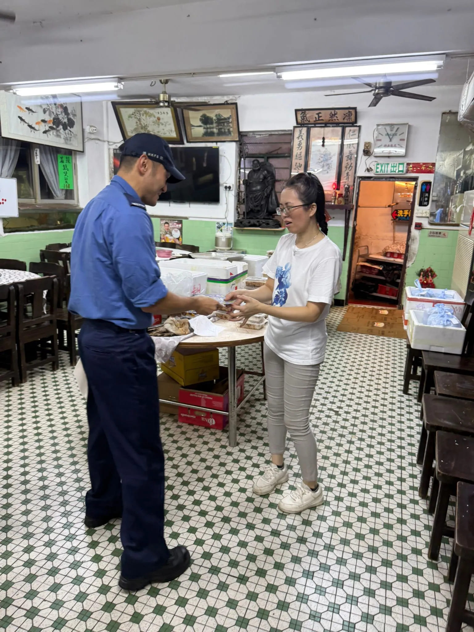 消防人員向商戶簡介極端天氣的安全須知