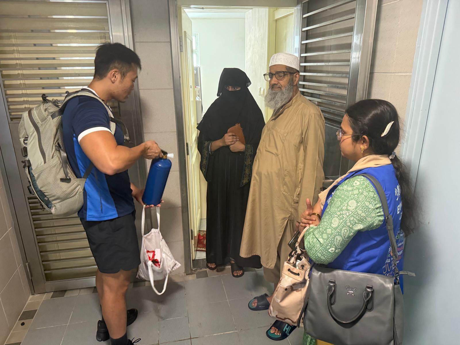 消防人員與關愛隊上門派發防火三寶予區內少數族裔長者
