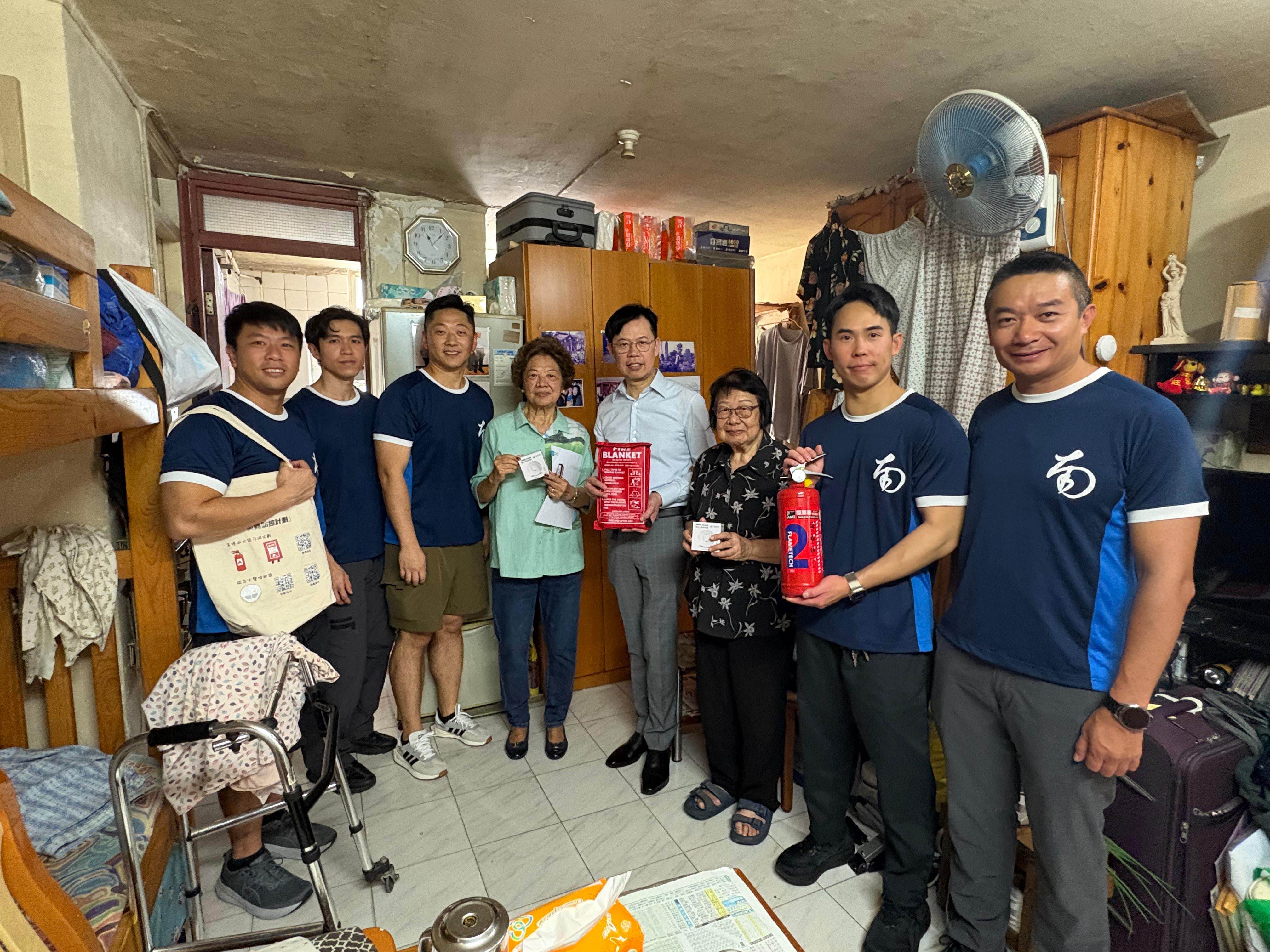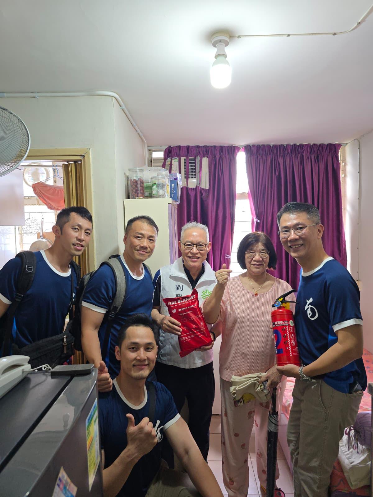 長者家訪活動於2025年8月27日在長安邨順利舉行,由葵青區偉盈小區關愛隊副隊長劉興華先生, BBS, MH, JP及社區應急先鋒名譽會長會(葵青區)名譽顧問譚惠珍女士, BBS, MH陪同參與。是次活動共探訪了10戶長者家庭,並向他們派發了10套「防火三寶」(滅火筒、滅火氈和獨立火警偵測器),以及防火安全宣傳單張,以提升長者的家居防火意識。
