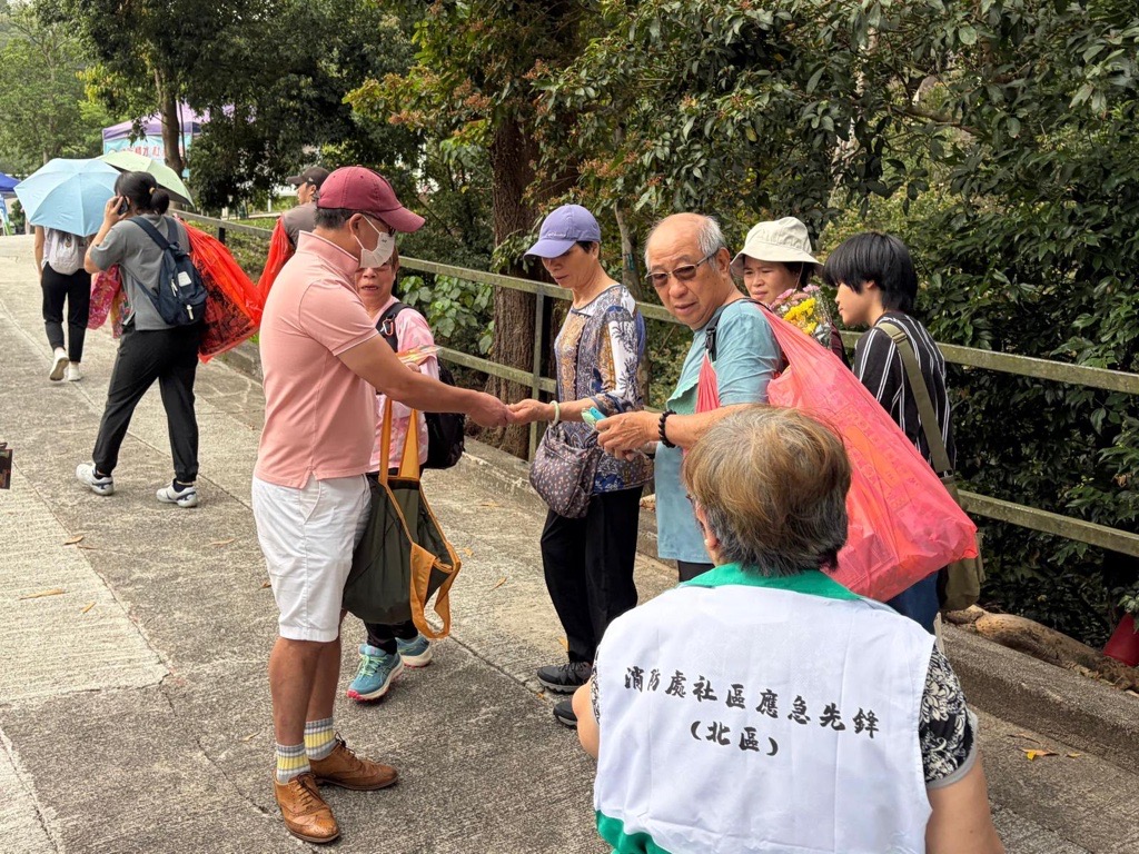 由北區民政事務處、北區防火委員會及粉嶺消防局協辦的「清明宣傳防止山火活動」在今日(3月28日)順利舉行,主辦單位聯同一眾工作人員和北區社區應急先鋒到和合石,向市民宣傳防止山火信息,並派發防火宣傳單張及宣傳品,提醒大家清明節掃墓時切勿留低火種,珍惜及愛護大自然。