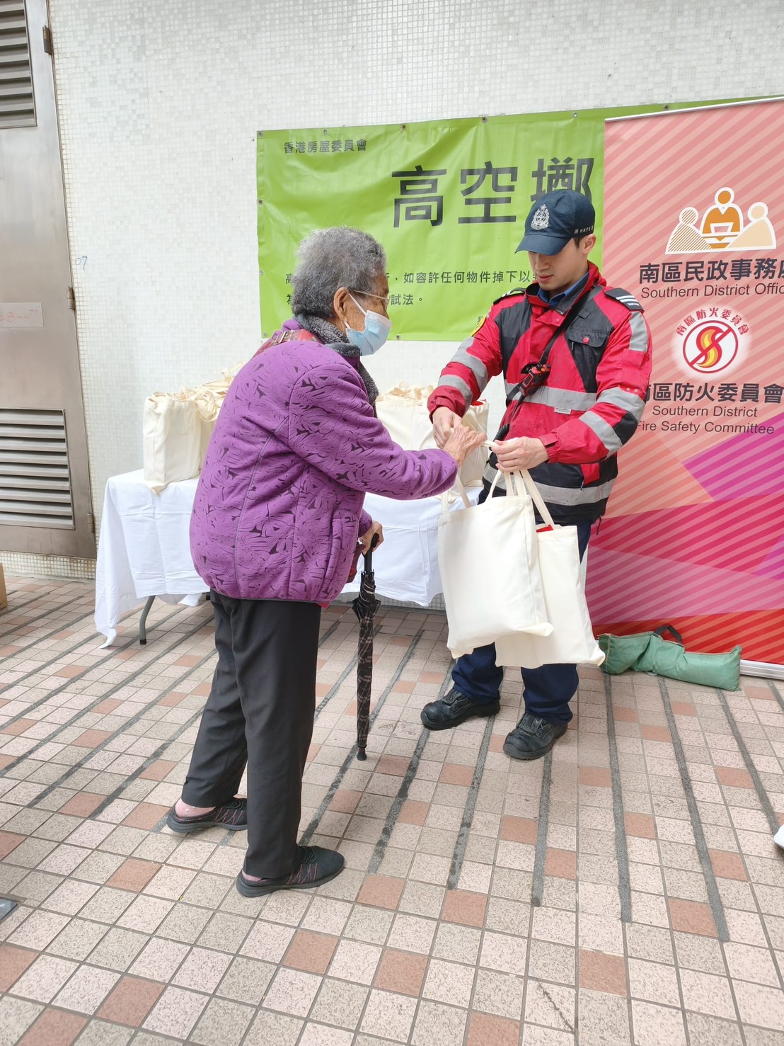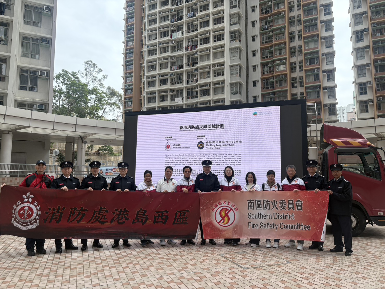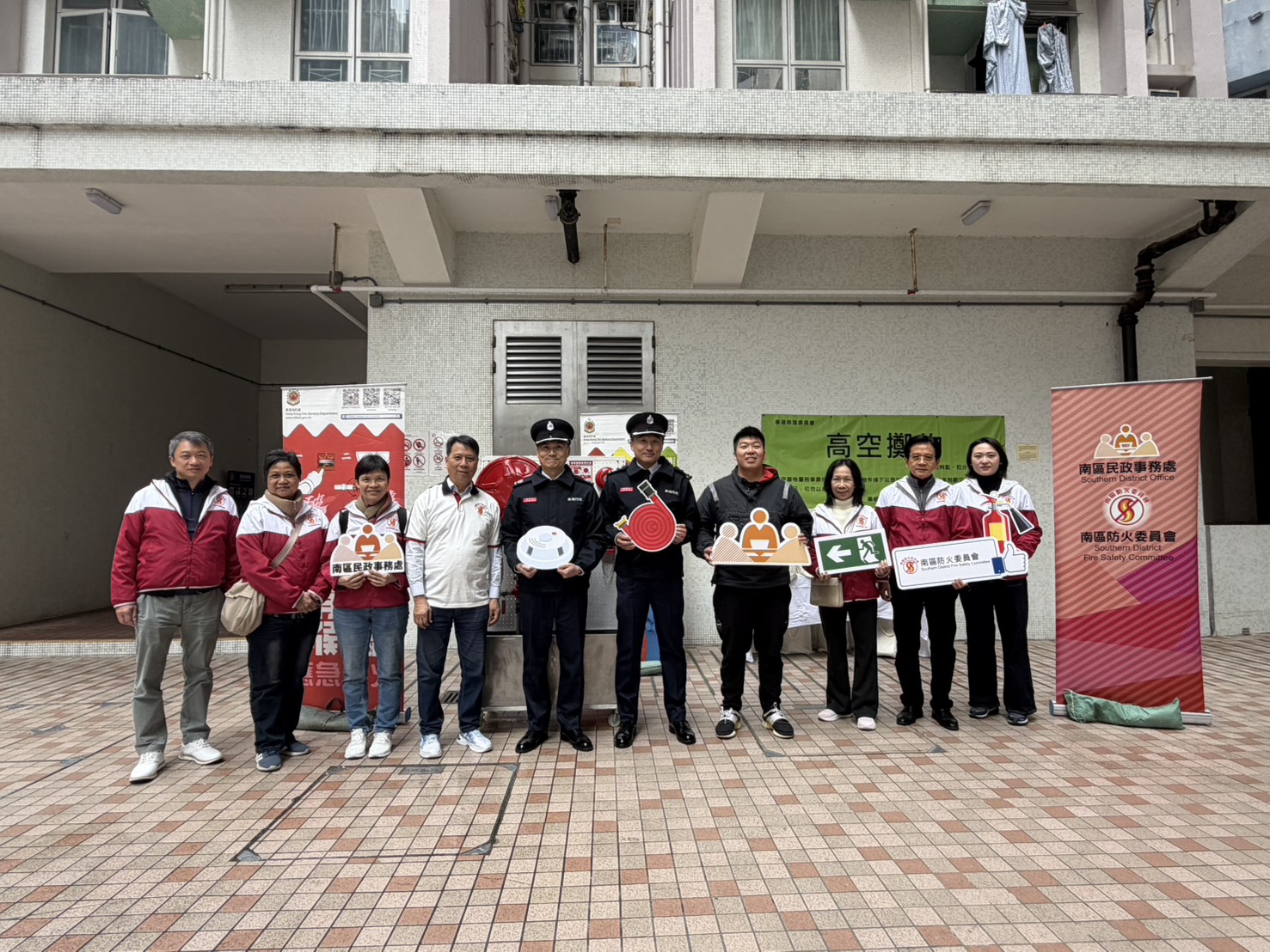在2026年1月23日,消防處聯同南區防火委員會在石排灣邨進行防火宣傳活動,當日除了講解及示範如何正確使用消防喉轆外,亦向市民宣傳防災應急訊息及派發防災應急包。活動中,南區防火委員會主席一同探訪長者並派發及安裝獨立火警偵測器。另外,消防處亦派員巡查大廈內的消防裝置及設備,以確保消防裝置及設備已進行年檢並在有效操作狀態。與此同時,於大廈的防煙門及消防喉轆貼上新設計的「防煙門 常關」及「如何正確使用消防喉轆」的貼紙,從而提高市民的消防安全意識。