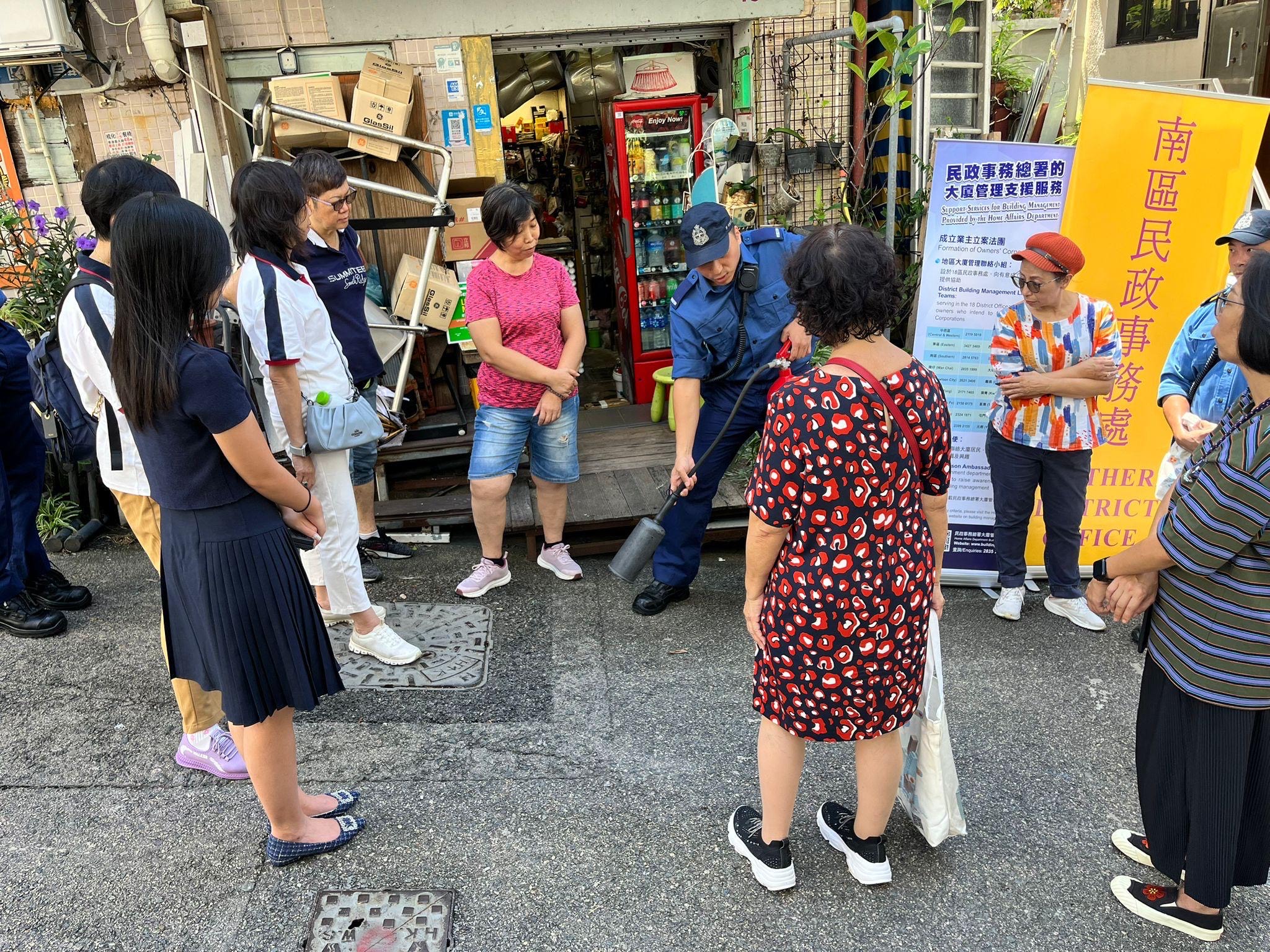 赤柱大街地形獨特,街內巷道縱橫交錯。消防處主動走入社區,向三無大廈住戶派發「防火三寶」,與市民互動並分享防火知識和應急措施,增強社區的安全防護能力。
