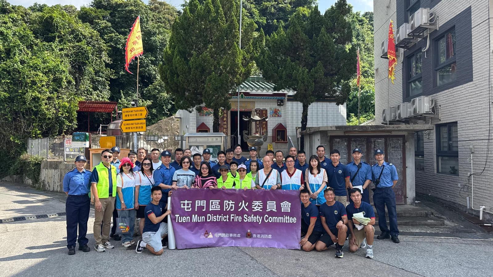 在2025年10月18日,屯門民政事務處、消防處社區應急先鋒名譽會長會(屯門區)、屯門區防火委員會與新界西區消防屬員協辦防止山火的宣傳活動,到訪掃管笏村、青山灣漁民墳場及青磚圍宣傳防止山火信息。