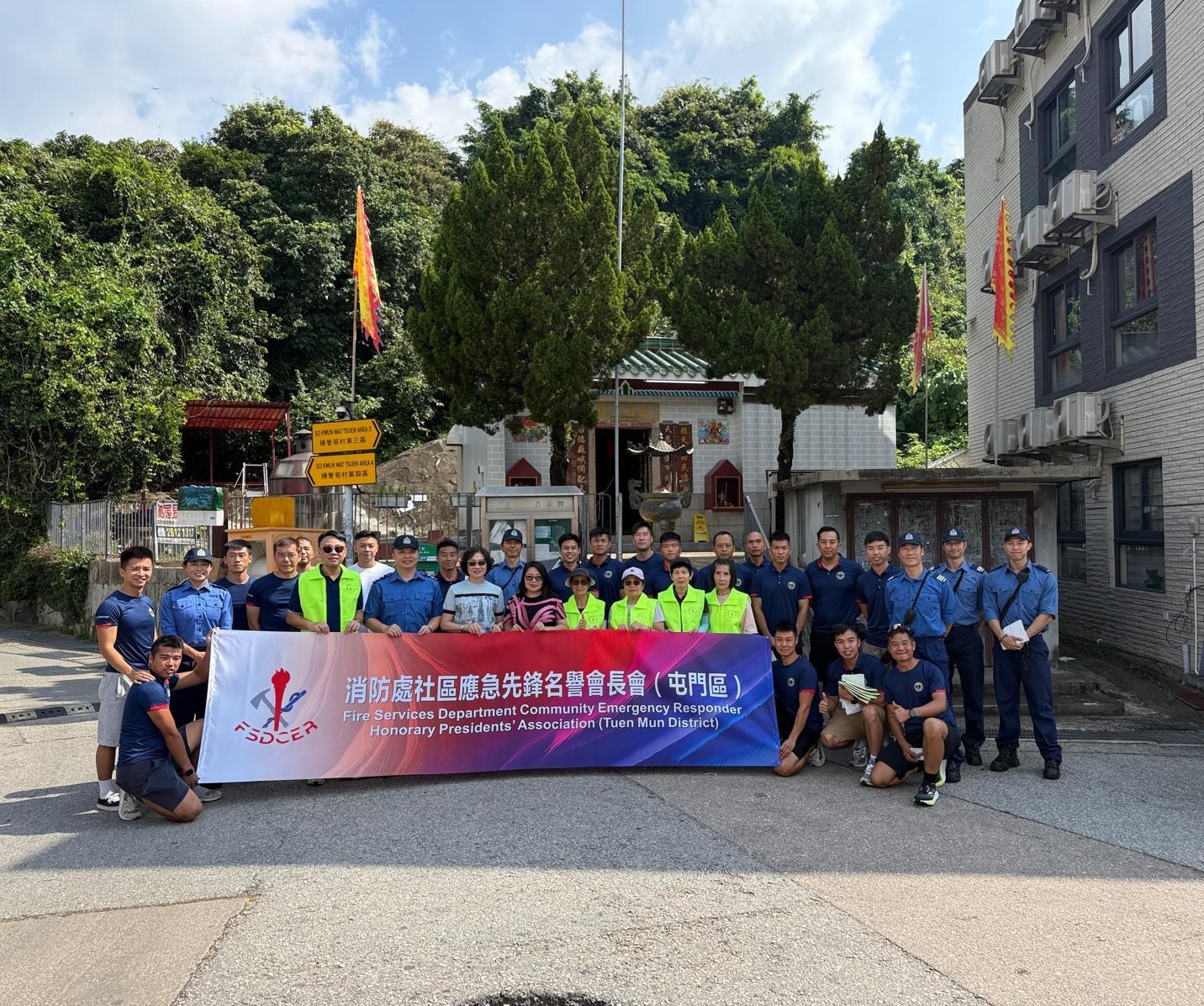 新界西區消防屬員、消防處社區應急先鋒名譽會長會(屯門區)、消防處社區應急先鋒(屯門區)合照。