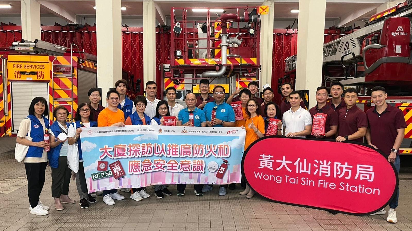 消防處在9月20日和27日聯同消防處社區應急先鋒名譽會長會(黃大仙區)、黃大仙區防火委員會和關愛隊,到訪區內不同大廈,向居民包括長者住戶宣傳防火訊息,並派發「防火三寶」,教導他們如何使用滅火筒、滅火氈及獨立火警偵測器應對火警。